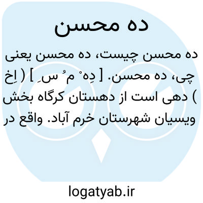 ده محسن. [ دِه ْ م ُ س ِ ] ( اِخ ) دهی است از دهستان کرگاه بخش ویسیان شهرستان خرم آباد. واقع در 2هزارگزی جنوب ماسور. دارای 250 تن سکنه. آب آن از نهر شاه جوی. ساکنین از طایفه میر وبهاروند می باشند. ( از فرهنگ جغرافیایی ایران ج 6 ).