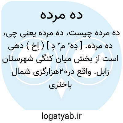 ده مرده. [ دَه ْ م َ دَ / دِ ] ( ص نسبی ) منسوب به ده نفر مرد و یا زیادتر.( ناظم الاطباء ). هر چیز منسوب به ده مرد که کنایه ازبسیاری مرد است چون زر ده مرده و جام ده مرده، زری و جامی که به مردم بسیار کفایت کند. ( از آنندراج ).