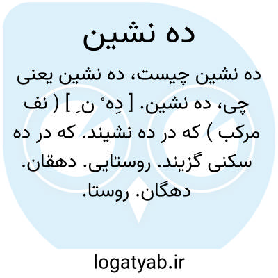 ده نشین. [ دِه ْ ن ِ ] ( نف مرکب ) که در ده نشیند. که در ده سکنی گزیند. روستایی. دهقان. دهگان. روستا. قاری. ( یادداشت مؤلف ). و رجوع به دهقان شود.