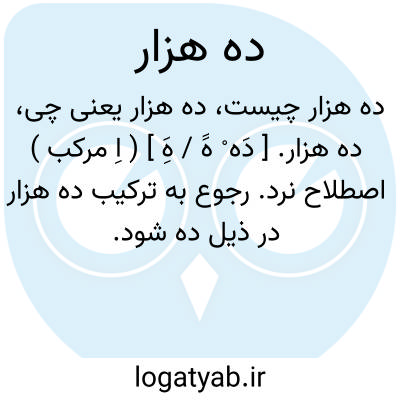 ۱ - ( اسم ) عددی اصلی برابر ده هزار ( ۲. ) ۱٠٠٠٠ - بازی چهارم از هفت بازی نرد ده هزاران هزار هزاران.