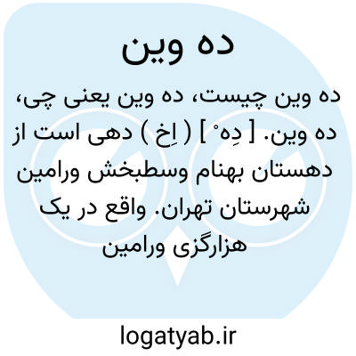 ده وین. [ دِه ْ ] ( اِخ ) دهی است از دهستان بهنام وسطبخش ورامین شهرستان تهران. واقع در یک هزارگزی ورامین با 174 تن سکنه. ( از فرهنگ جغرافیایی ایران ج 1 ).
