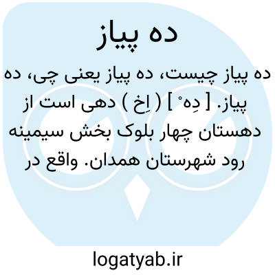 ده پیاز. [ دِه ْ ] ( اِخ ) دهی است از دهستان چهار بلوک بخش سیمینه رود شهرستان همدان. واقع در 7هزارگزی جنوب خاور قصبه بهار. سکنه آن 1175 تن. آب آن از چشمه و قنات تأمین می شود. راه آن اتومبیل رو است. ( از فرهنگ جغرافیایی ایران ج 5 ).