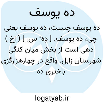 ده یوسف. [ دِه ْ س ِ ] ( اِخ ) دهی است از بخش میان کنگی شهرستان زابل. واقع در چهارهزارگزی باختری ده دوست محمد. با 146 تن سکنه. آب آن از رودخانه هیرمند مشروب می شود. ( از فرهنگ جغرافیایی ایران ج 8 ).