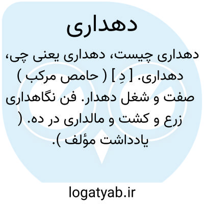 دهداری. [ دِ ] ( حامص مرکب ) صفت و شغل دهدار. فن نگاهداری زرع و کشت و مالداری در ده. ( یادداشت مؤلف ). || شغل دهدار. عمل اداره دهستان. و رجوع به دهدار شود. || اداره ای که دهدار در رأس آن قرار دارد و به اداره امور دهستان می پردازد.