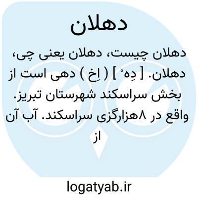دهلان. [ دِه ْ ] ( اِخ ) دهی است از بخش سراسکند شهرستان تبریز. واقع در 8هزارگزی سراسکند. آب آن از چشمه و رود تأمین می شود.سکنه آن 482 تن. ( از فرهنگ جغرافیایی ایران ج 4 ).