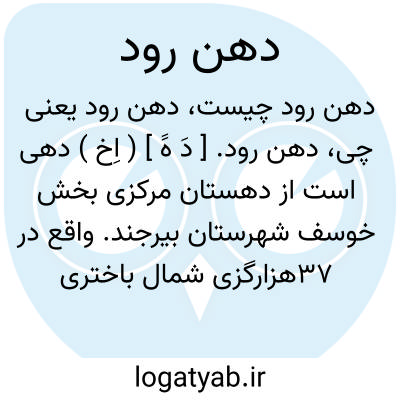 دهن رود. [ دَ هََ ] ( اِخ ) دهی است از دهستان مرکزی بخش خوسف شهرستان بیرجند. واقع در 37هزارگزی شمال باختری خوسف. دارای 180 تن سکنه. آب آن از قنات تأمین می شود. راه آن اتومبیل رو است. ( از فرهنگ جغرافیایی ایران ج 2 ).