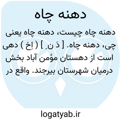 دهنه چاه. [ دَ ن ِ ] ( اِخ ) دهی است از دهستان مؤمن آباد بخش درمیان شهرستان بیرجند. واقع در 15هزارگزی جنوب باختری درمیان با 132 تن سکنه. ( از فرهنگ جغرافیایی ایران ج 9 ).