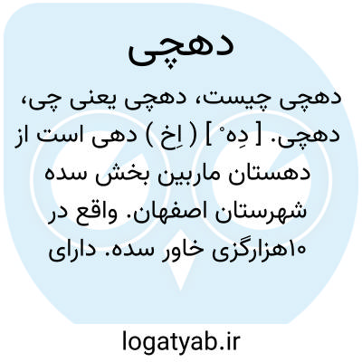 دهچی. [ دِه ْ ] ( اِخ ) دهی است از دهستان ماربین بخش سده شهرستان اصفهان. واقع در 10هزارگزی خاور سده. دارای 335 تن سکنه است. آب آن از زاینده رود تأمین می شود. ( از فرهنگ جغرافیایی ایران ج 10 ).