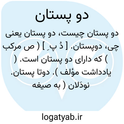 دوپستان. [ دُ پ ِ ] ( ص مرکب ) که دارای دو پستان است. ( یادداشت مؤلف ). دوتا پستان. نودَلان ( به صیغه تثنیه ). ( منتهی الارب ).