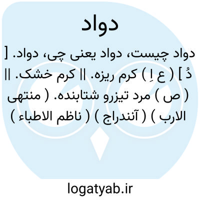 دواد. [ دُ ] ( ع اِ ) کرم ریزه. || کرم خشک. || ( ص ) مرد تیزرو شتابنده. ( منتهی الارب ) ( آنندراج ) ( ناظم الاطباء ) ( از اقرب الموارد ).