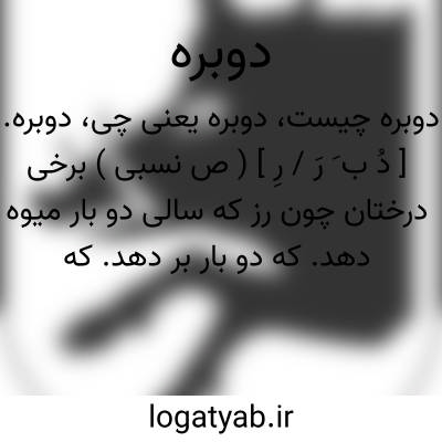 دوبره. [ دُ ب َ رَ / رِ ] ( ص نسبی ) برخی درختان چون رز که سالی دو بار میوه دهد. که دو بار بر دهد. که دوباره میوه آرد به یک سال. ( یادداشت مؤلف ): خلیفه. میوه دوبره. ( منتهی الارب ).