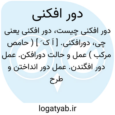 دورافکنی. [ اَ ک َ ] ( حامص مرکب ) عمل و حالت دورافکن. عمل دور افگندن. عمل دور انداختن و طرح و طرد کردن. ( یادداشت مؤلف ). عمل راندن و دور کردن. || عمل پرتاب کردن به فاصله بعید. مفلاء؛ قسمی تیر که بدان دورافکنی و بلندافکنی آموختندی. ( یادداشت مؤلف ).
