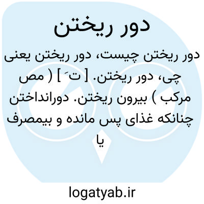 دور ریختن. [ ت َ ] ( مص مرکب ) بیرون ریختن. دورانداختن چنانکه غذای پس مانده و بیمصرف یا چیزی بی ارزش را. ( یادداشت مؤلف ). رجوع به دورانداختن شود.