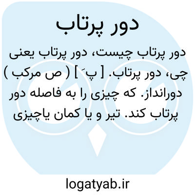 دور پرتاب. [ پ َ ] ( ص مرکب ) دورانداز. که چیزی را به فاصله دور پرتاب کند. تیر و یا کمان یاچیزی که چیزی را به مسافت دور بیندازد: نفوح؛ کمان دورپرتاب. ( یادداشت مؤلف ). رجوع به دورانداز شود.