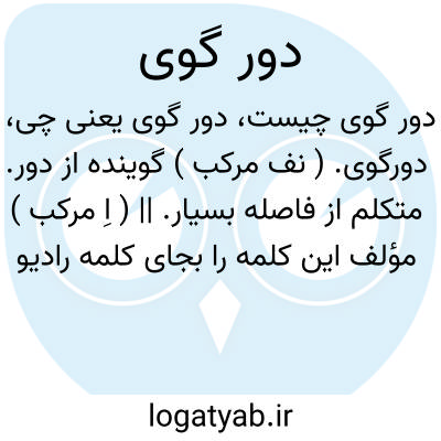 دورگوی. ( نف مرکب ) گوینده از دور. متکلم از فاصله بسیار. || ( اِ مرکب ) مؤلف این کلمه را بجای کلمه رادیو برگزیده است.