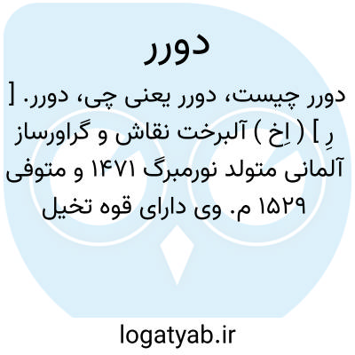 دورر. [ رِ ] ( اِخ ) آلبرخت نقاش و گراورساز آلمانی متولد نورمبرگ 1471 و متوفی 1529 م. وی دارای قوه تخیل نیرومندی بود و بنیانگذار مکتب نقاشی آلمانی است. دور در تکمیل حکاکی و گراور روی چوب کوشش فراوان کرده است.