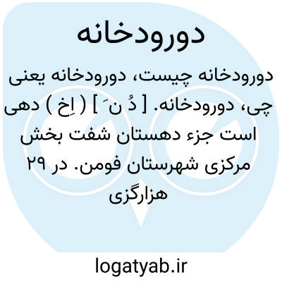 دورودخانه. [ دُ ن َ ] ( اِخ ) دهی است جزء دهستان شفت بخش مرکزی شهرستان فومن. در 29 هزارگزی جنوب خاوری فومن و 20 هزارگزی جنوب خاوری شفت. با 618 تن سکنه. آب آن از نهر امام زاده ابراهیم وراه آن مالروست. ( از فرهنگ جغرافیایی ایران ج 2 ).