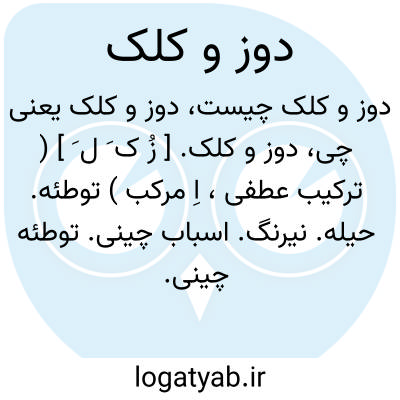 دوز و کلک. [ زُ ک َ ل َ ] ( ترکیب عطفی، اِ مرکب ) توطئه. حیله. نیرنگ. اسباب چینی. توطئه چینی. حقه بازی: با هزار دوز و کلک خانه را از دست من خارج کرد. ( یادداشت مؤلف ).