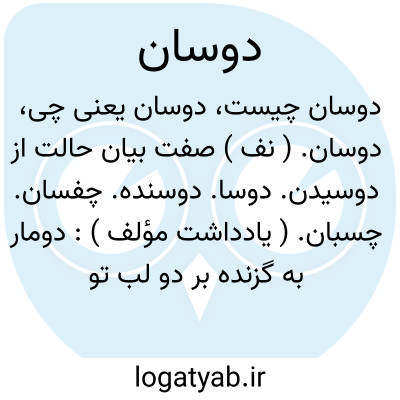 دوسان. ( نف ) صفت بیان حالت از دوسیدن. دوسا. دوسنده. چفسان. چسبان. ( یادداشت مؤلف ):