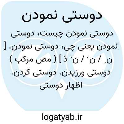 لغت نامه دهخدا دوستی نمودن. [ ن ِ / ن َ / ن ُ دَ ] ( مص مرکب ) دوستی ورزیدن. دوستی کردن. اظهار دوستی کردن. ( یادداشت مؤلف ). تحبب. ( المصادر زوزنی ) ( تاج المصادر بیهقی ). تودد. ( دهار ): شرس؛ دوستی نمودن با مردم. ( منتهی الارب ). رجوع به دوستی کردن شود.