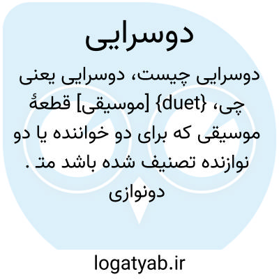 💡 فرهنگستان زبان و ادب فارسی برابرهای دونوازی، دوسرایی و دوتایی را برای «دوئِت» تصویب کردهاست.