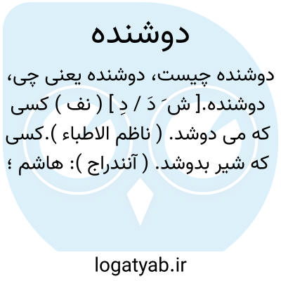 دوشنده.[ ش َ دَ / دِ ] ( نف ) کسی که می دوشد. ( ناظم الاطباء ).کسی که شیر بدوشد. ( آنندراج ): هاشم؛ دوشنده شیر. استهذاف؛ کمی کردن دوشنده. ( منتهی الارب ):