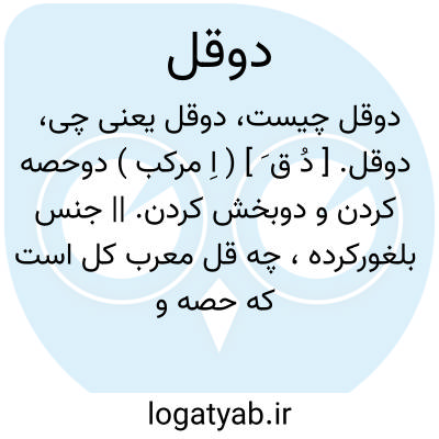 دوقل. [ دُ ق َ ] ( اِ مرکب ) دوحصه کردن و دوبخش کردن. || جنس بلغورکرده، چه قل معرب کل است که حصه و پاره باشد. ( لغت محلی شوشتر ).