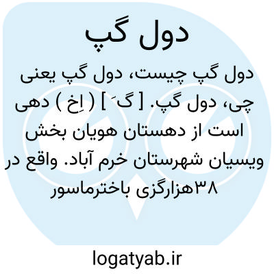 دول گپ. [ گ َ ] ( اِخ ) دهی است از دهستان هویان بخش ویسیان شهرستان خرم آباد. واقع در 38هزارگزی باخترماسور دارای 300 تن سکنه است. آب آن از رودخانه خرم آباد و چشمه هاست. ( از فرهنگ جغرافیایی ایران ج 5 ).