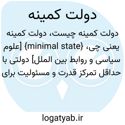 {minimal state} [علوم سیاسی و روابط بین الملل] دولتی با حداقل تمرکز قدرت و مسئولیت برای ادارۀ امور جامعه