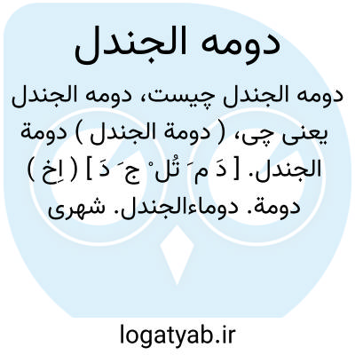 ( دومة الجندل ) دومة الجندل. [ دَ م َ تُل ْ ج َ دَ ] ( اِخ ) دومة. دوماءالجندل. شهری نزدیک تبوک و امروزه آن را جوف می نامند و امر تحکیم به حکمیت ابوموسی اشعری و عمروبن عاص بدانجا بود. ( یادداشت مؤلف ). موضعی یا شهری است نزدیک تبوک و در آن حصنی است محکم. ( منتهی الارب ).