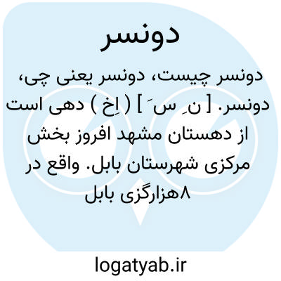 دونسر. [ ن ِ س َ ] ( اِخ ) دهی است از دهستان مشهد افروز بخش مرکزی شهرستان بابل. واقع در 8هزارگزی بابل دشت. دارای 785 تن سکنه است. آب آن از سجاد رود است. ( از فرهنگ جغرافیایی ایران ج 3 ).
