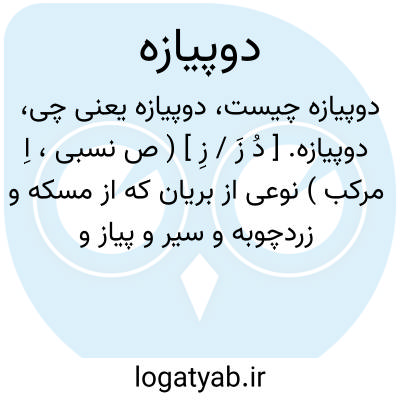 دوپیازه. [ دُ زَ / زِ ] ( ص نسبی، اِ مرکب ) نوعی از بریان که از مسکه و زردچوبه و سیر و پیاز و دیگرافزارها ترتیب می دهند. ( ناظم الاطباء ). نوعی از قلیه و نانخورش. ( آنندراج ). طاس کباب. ( یادداشت مؤلف ):