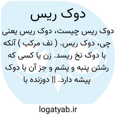 دوک ریس. ( نف مرکب ) آنکه با دوک نخ ریسد. زن یا کسی که رشتن پنبه و پشم و جز آن با دوک پیشه دارد. || دوزنده با نخ پنبه. ( ناظم الاطباء ).