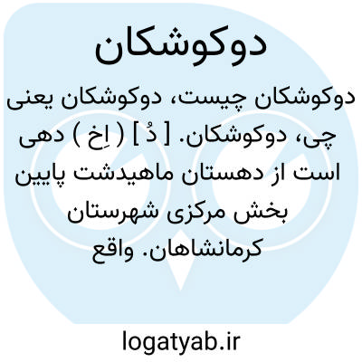 دوکوشکان. [ دُ ] ( اِخ ) دهی است از دهستان ماهیدشت پایین بخش مرکزی شهرستان کرمانشاهان. واقع در چهار هزارگزی جنوب خاوری ماهیدشت و 18هزارگزی جنوب باختری کرمانشاهان. سکنه 500 تن. آب آن از رودخانه مرک.راه ماشین رو است. ( از فرهنگ جغرافیایی ایران ج 5 ).