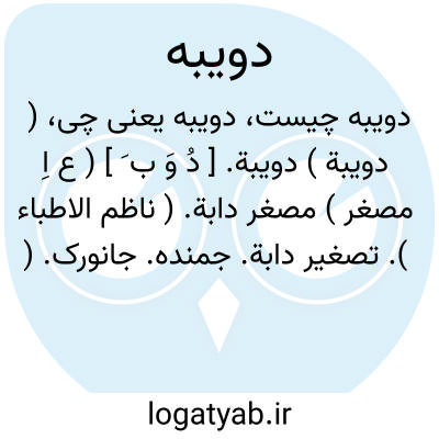 ( دویبة ) دویبة. [ دُ وَ ب َ ] ( ع اِ مصغر ) مصغر دابة. ( ناظم الاطباء ). تصغیر دابة. جمنده. جانورک. ( یادداشت مؤلف ). و رجوع به دابة شود.