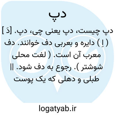 دپ. [دَ ] ( اِ ) دایره و بعربی دف خوانند. دف معرب آن است. ( لغت محلی شوشتر ). رجوع به دف شود. || طبلی و دهلی که یک پوست داشته باشد. ( ناظم الاطباء ).