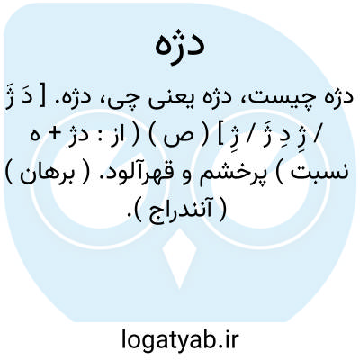 دژه. [ دَ ژَ / ژِ دِ ژَ / ژِ ] ( ص ) ( از: دژ + ه نسبت ) پرخشم و قهرآلود. ( برهان ) ( آنندراج ).
