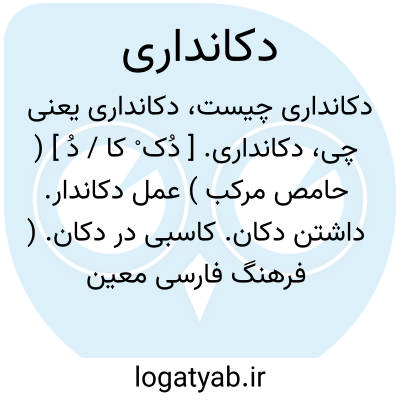 دکانداری. [ دُک ْ کا / دُ ] ( حامص مرکب ) عمل دکاندار. داشتن دکان. کاسبی در دکان. ( فرهنگ فارسی معین ). کسب. ( ناظم الاطباء ). || کلبه داری. ( یادداشت مرحوم دهخدا ). || کنایه از چرب زبانی و تعریف کنندگی. ( برهان ). چرب زبانی و تکلف کردن در فروختن کالای سهل به بهای گران. دکان آرایی. ( آنندراج ). چرب زبانی و خوش آمدگویی. ( لغت محلی شوشتر، نسخه خطی ). چرب زبانی. تعریف و تحسین. ( ناظم الاطباء ). گفتن فروشنده با زرنگی و حیله مدح کالای دکان را. تمجید و توصیف به خوبی از کالای خود. ستودن دکاندار کالای خویش را. ( یادداشت مرحوم دهخدا ). بازارگرمی. چاپلوسی. تملق: