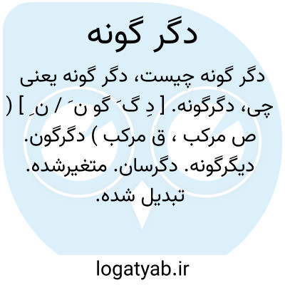 دگرگونه. [ دِ گ َ گو ن َ / ن ِ ] ( ص مرکب، ق مرکب ) دگرگون. دیگرگونه. دگرسان. متغیرشده. تبدیل شده. منقلب. از حال بگشته. || با وضعی دیگر. با وضعی غیر از وضع معهود. با وضعی متفاوت. با کیفیتی دیگر. مختلف با.... غیرموافق با.... از نوع و وصف و جنسی دیگر. بصورتی دیگر. بنوع دیگر. متفاوت. غیرمعمول. غیرمتعارف: