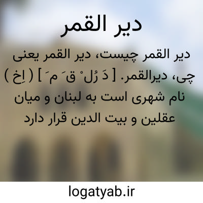 دیرالقمر. [ دَ رُل ْ ق َ م َ ] ( اِخ ) نام شهری است به لبنان و میان عقلین و بیت الدین قرار دارد این شهر پایتخت امراء معنیین [ از حکام لبنان ] و شهابیان لبنان بوده است. ( از الموسوعة العربیة المیسرة ).