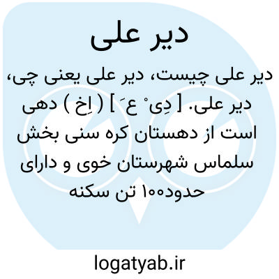 دیر علی. [ دِی ْ ع َ ] ( اِخ ) دهی است از دهستان کره سنی بخش سلماس شهرستان خوی و دارای حدود100 تن سکنه است. ( از فرهنگ جغرافیایی ایران ج 4 ).