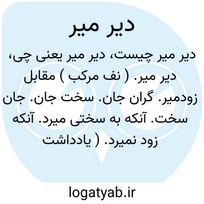 دیر میر. ( نف مرکب ) مقابل زودمیر. گران جان. سخت جان. جان سخت. آنکه به سختی میرد. آنکه زود نمیرد. ( یادداشت مؤلف ).