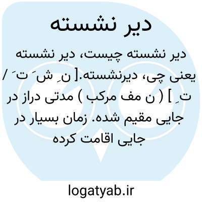 دیرنشسته.[ ن ِ ش َ ت َ / ت ِ ] ( ن مف مرکب ) مدتی دراز در جایی مقیم شده. زمان بسیار در جایی اقامت کرده: