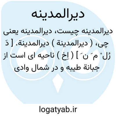 ( دیرالمدینة ) دیرالمدینة. [ دَ رُل ْ م َ ن َ ] ( اِخ ) ناحیه ای است از جبانة طیبه و در شمال وادی الملکات ( گورستان ملکه ها )واقع است و مقر عمال جبانة بود و در این مکان گورستان و نقوش و تصاویری وجود دارد که از نظر هنری قابل توجه است و قسمتی از زندگی اجتماعی مصر را در زمان فراعنه نشان میدهد. ( از الموسوعة العربیة المیسرة ).