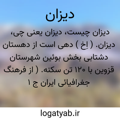 دیزان. ( اِخ ) دهی است از دهستان بالا بخش طالقان شهرستان تهران با 890 تن سکنه. ( از فرهنگ جغرافیائی ایران ج 1 ).