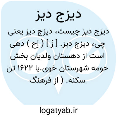 دیزج دیز. [ زَ ] ( اِخ ) دهی است از دهستان ولدیان بخش حومه شهرستان خوی.با 1622 تن سکنه. ( از فرهنگ جغرافیائی ایران ج 4 ).