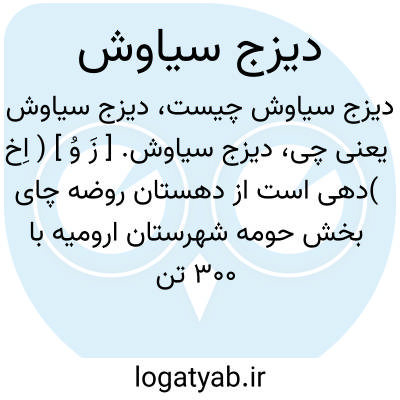 دیزج سیاوش. [ زَ وُ ] ( اِخ )دهی است از دهستان روضه چای بخش حومه شهرستان ارومیه با 300 تن سکنه. ( از فرهنگ جغرافیائی ایران ج 4 ).