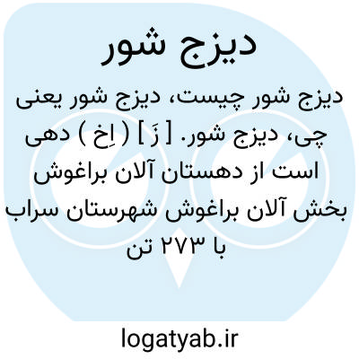 دیزج شور. [ زَ ] ( اِخ ) دهی است از دهستان آلان براغوش بخش آلان براغوش شهرستان سراب با 273 تن سکنه. ( از فرهنگ جغرافیائی ایران ج 4 ).