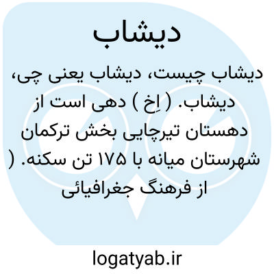 دیشاب. ( اِخ ) دهی است از دهستان تیرچایی بخش ترکمان شهرستان میانه با 175 تن سکنه. ( از فرهنگ جغرافیائی ایران ج 4 ) ( یادداشت مؤلف ).