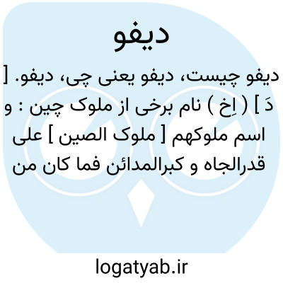 دیفو. [ دَ ] ( اِخ ) نام برخی از ملوک چین: و اسم ملوکهم [ ملوک الصین ] علی قدرالجاه و کبرالمدائن فما کان من مدینة صغیرة یسمی ملکها طسوشی. و معنی طسوشی اقام المدینة. و ماکان من مدینة مثل خانفوفاسم مالکها، دیفو ( اخبار الصین و الهند ص 17 ص 8 ).
